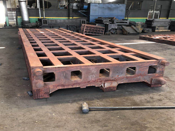 表面處理:工作面采用刮研工藝,用涂色法進(jìn)行檢驗(yàn),確保了平面精度。工作面上加工有T型槽和螺栓孔。非加工面去除型砂,并涂上防銹漆;